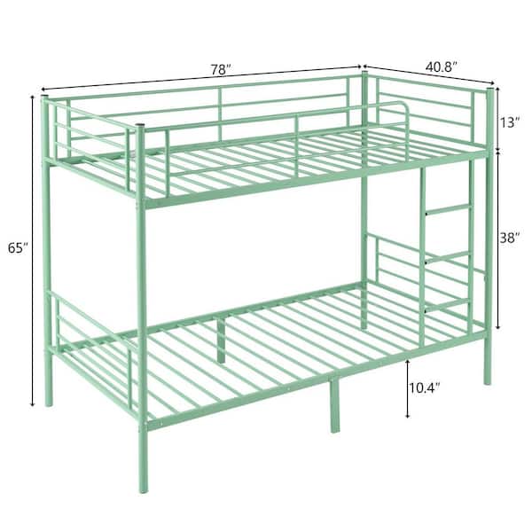 Green Twin Over Twin Steel Bunk Bed Frame Ladder Bedroom Dorm Room for Kids Adult Children