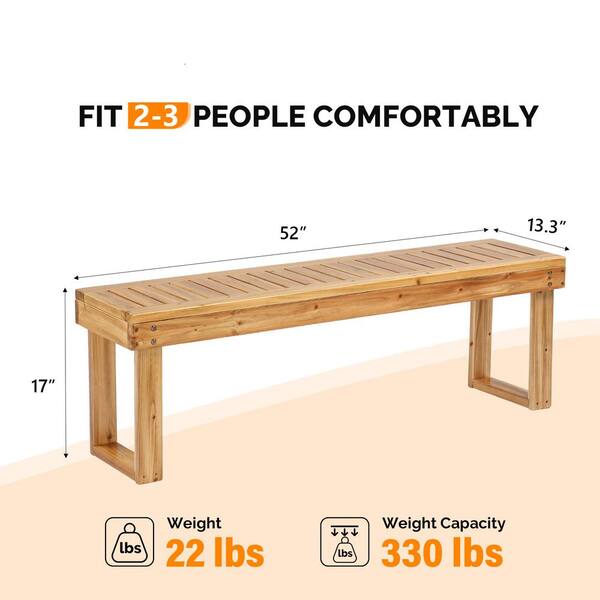 Light Brown Outdoor Fir Wood Ottoman Bench