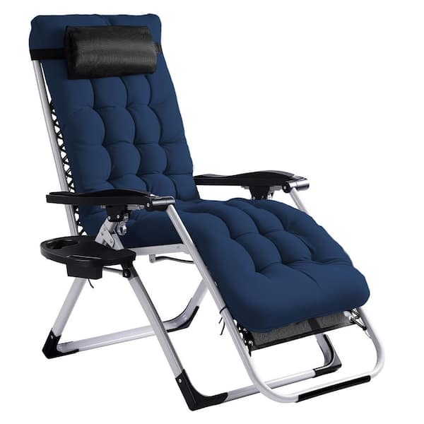 Patio Folding Zero Gravity Chair with Blue Cushion