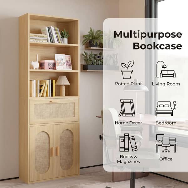 Rattan Tan 70.86 in. H Display Cabinet with 3 Layer 2-door 1-Drawer Farmhouse Rustic Style