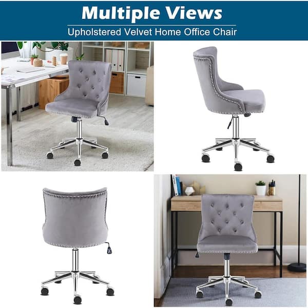VINGLI Velvet Adjustable Height Drafting Chair in Gray with Silver Frame