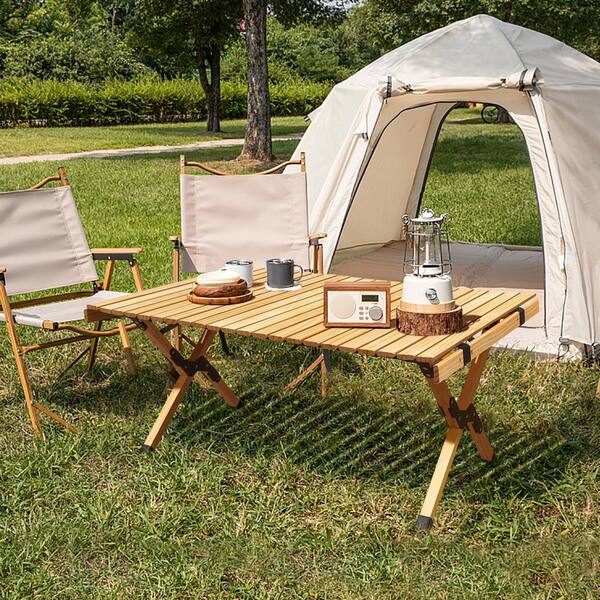 Wooden Roll-Up Camping Table with Carry Bag