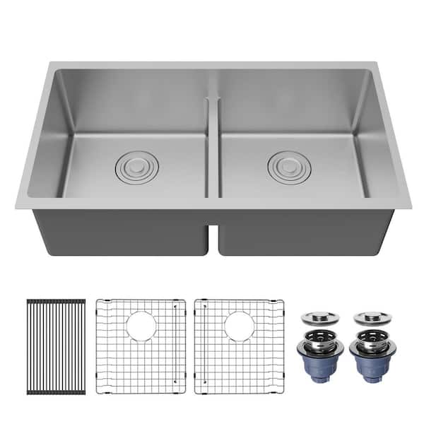 33-in. Undermount 50/50 Double Bowl 16 Gauge Stainless Steel Kitchen Sink