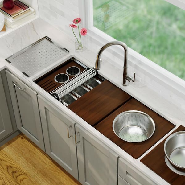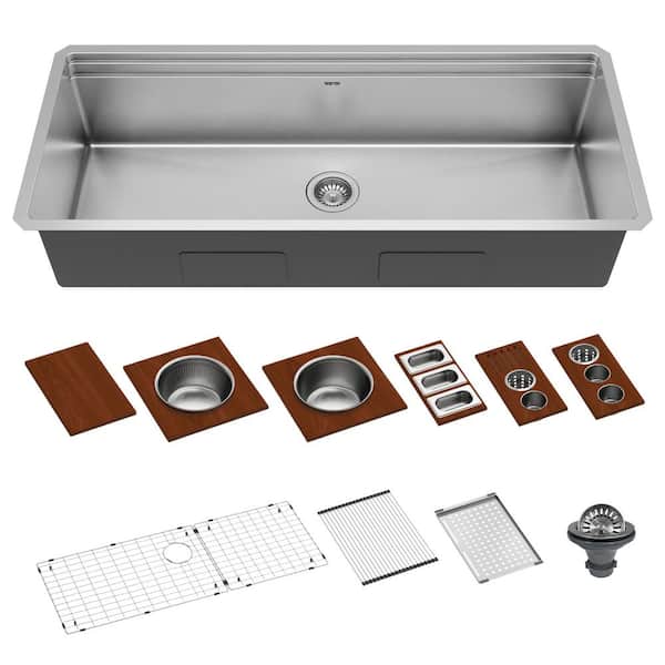 45 in. Undermount Single Bowl 16 Gauge Stainless Steel Workstation Kitchen Sink