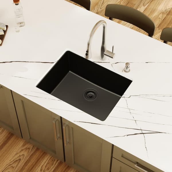 Black Quartz 24.38 in Single Bowl Undermount Kitchen Sink