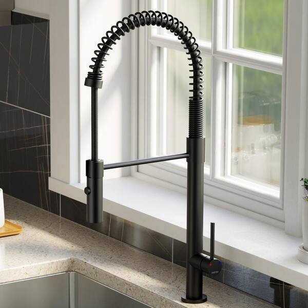 Bluffton Single Handle Pull Down Sprayer Kitchen Faucet with Matching Soap Dispenser in Matte Black