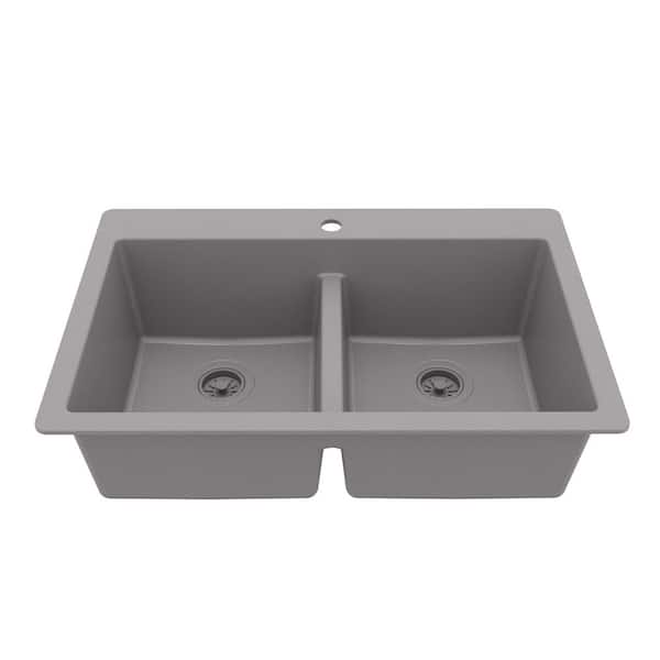 Grey Quartz/Granite 33 in. 50/50 Double Bowl Composite Drop-in Kitchen Sink