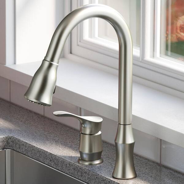 Hillwood Single Handle Pull Down Sprayer Kitchen Faucet with Matching Soap Dispenser in Stainless Steel