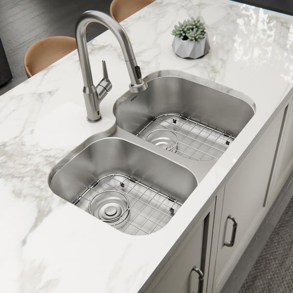 Profile 31-1/2 in. Undermount 40/60 Double Bowl 18-Gauge Stainless Steel Kitchen Sink