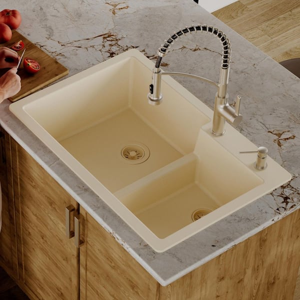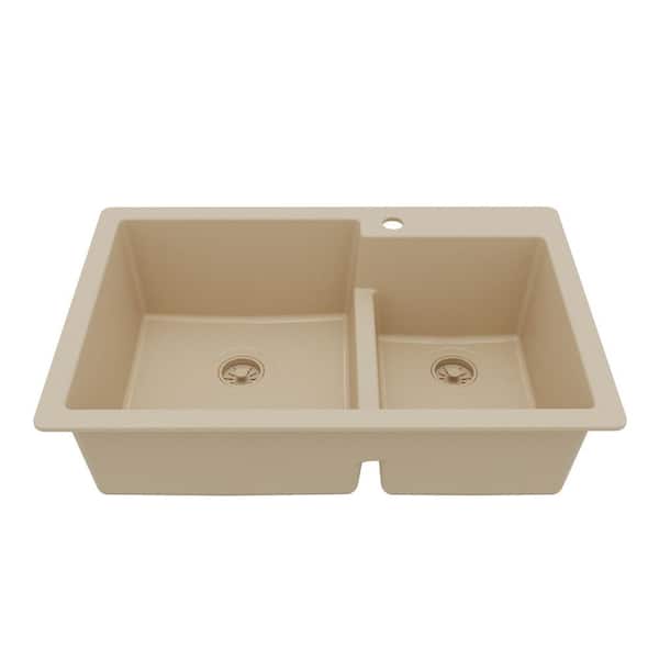 QT-811 Quartz/Granite 33 in. 60/40 Double Bowl Drop-In Kitchen Sink in Bisque