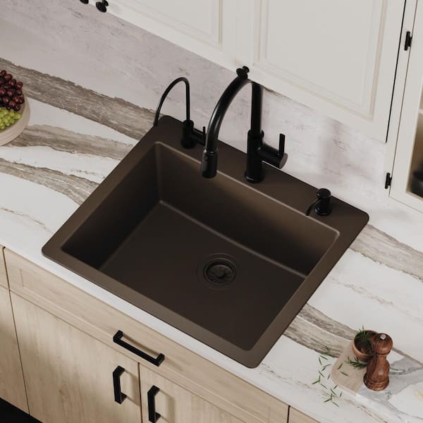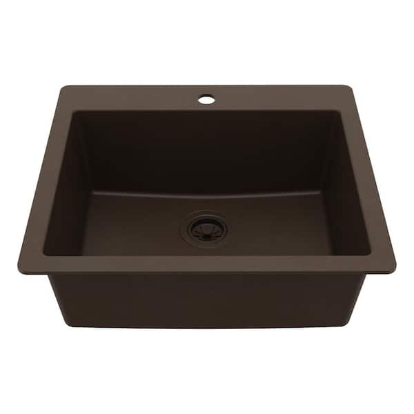 QT-820 Quartz/Granite 25 in. Single Bowl Drop-In Kitchen Sink in Brown
