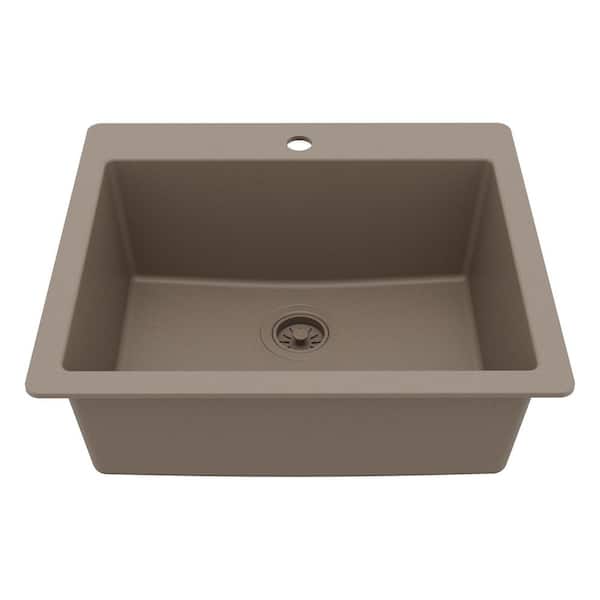 Quartz/Granite 25 in. Single Bowl Drop-In Kitchen Sink in Concrete