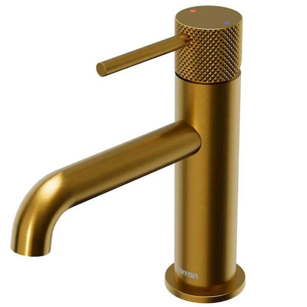 Tryst Single-Handle Single-Hole Basin Bathroom Faucet with Matching Pop-Up Drain in Gold