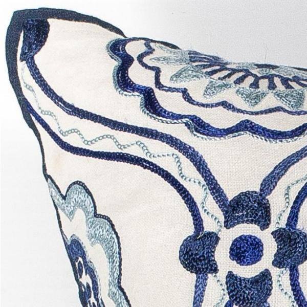 Fanfare Ivory and Blue Geometric Hypoallergenic Polyester 18 in. x 18 in. Throw Pillow