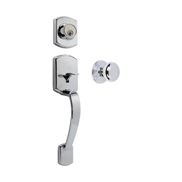 Katana Grade 2 Chrome Single Cylinder Entry Door Handleset with Aubryn Knob