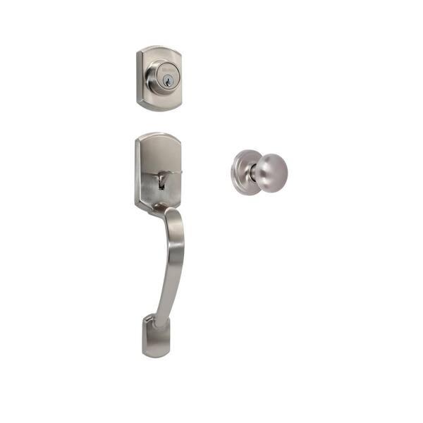 Katana Grade 2 Satin Nickel Single Cylinder Entry Door Handleset with Aubryn Knob