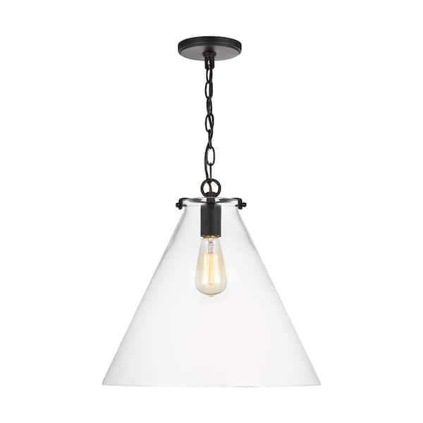 Kate 1-Light Midnight Black Cone Pendant with Clear Glass Shade