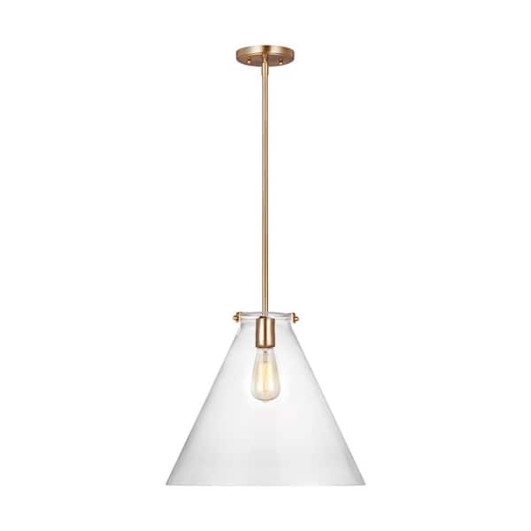 Kate 1-Light Satin Brass Cone Hanging Pendant with Clear Glass Shade