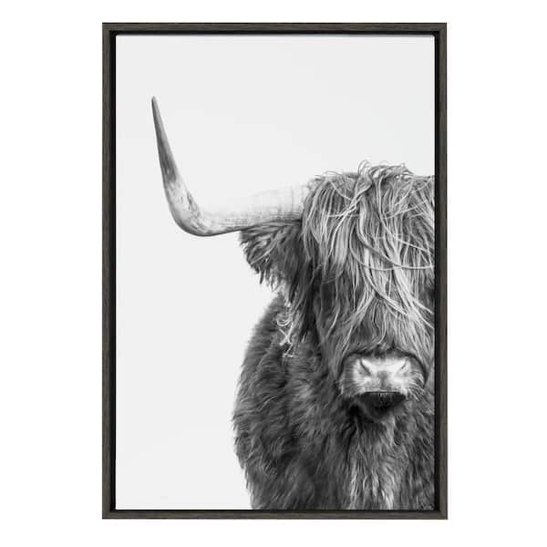 BandW highland Cow No. 1 by Amy Peterson Framed Animal Canvas Wall Art Print 33.00 in. x 23.00 in.