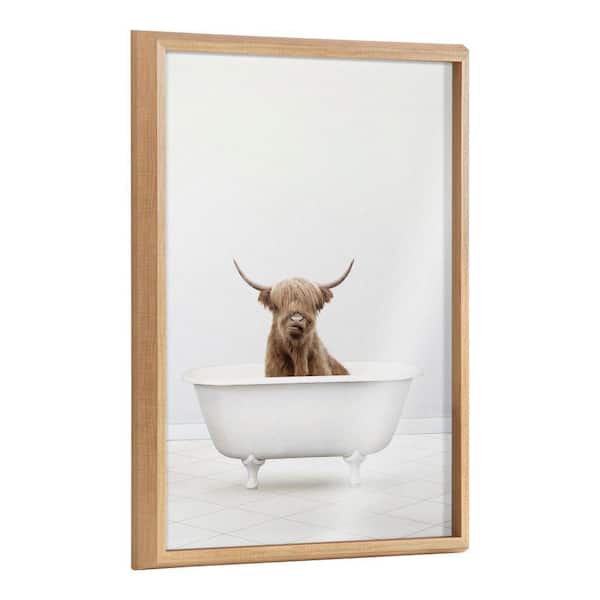Blake Highland Cow Solo Bathtub by Amy Peterson Art Studio Framed Glass Art Print 24 in. x 18 in.