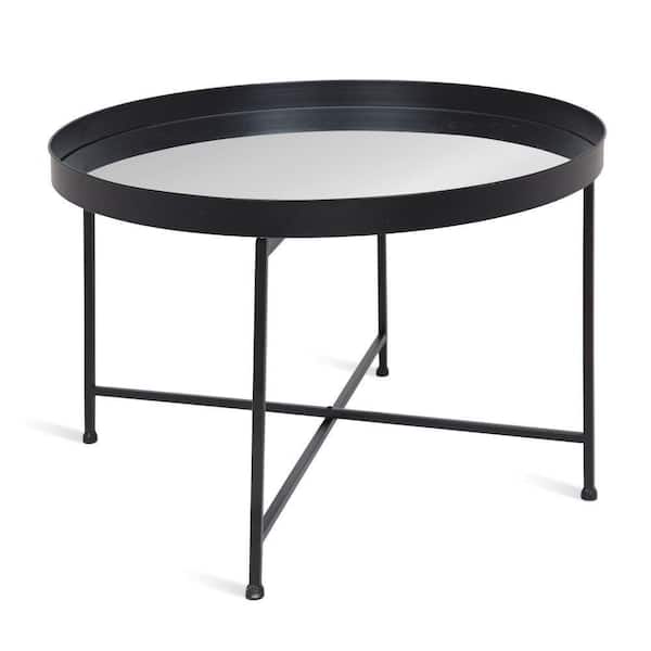 Celia Black 18.89 in. Round Glass (Mirror) Top Coffee Table