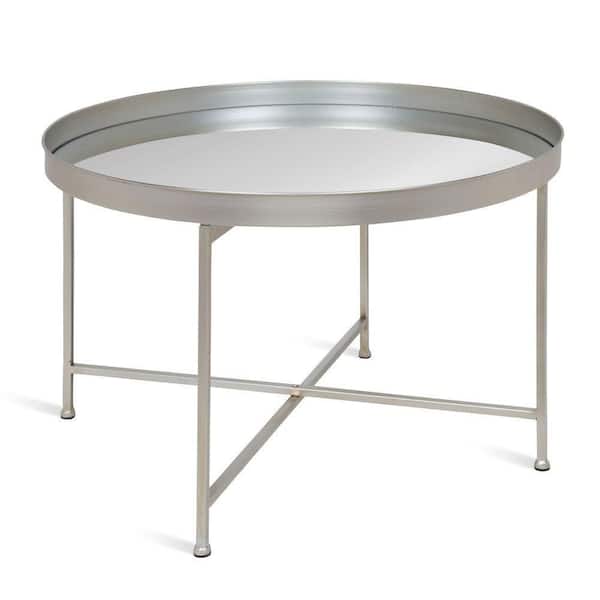 Celia Silver 18.89 in. Round Glass Top Coffee Table