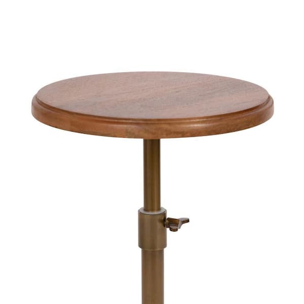 Engles 10 in. Walnut Brown Round Metal End Table