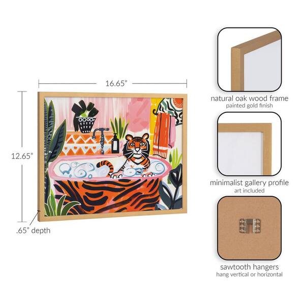 Gallery Bold Maximalist Tiger in Bubble Bath by The Creative Bunch Studio Gold Framed Art Print 16 in. x 12 in.