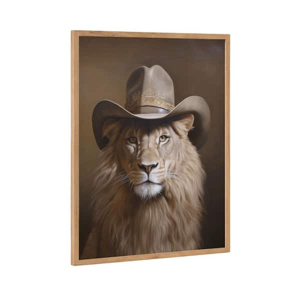 Gallery Lion Wearing a Western Cowboy Hat by Natural Framed Art Print 16 in. x 20 in.