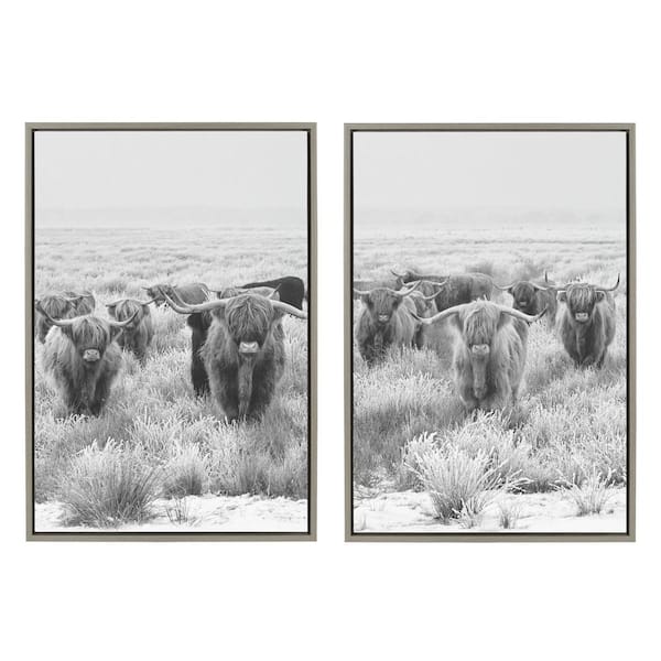 Herd of Highland Cows by The Creative Bunch Studio Framed Animal Canvas Wall Art Print 33.00 in. x 23.00 in. (Set of 2)