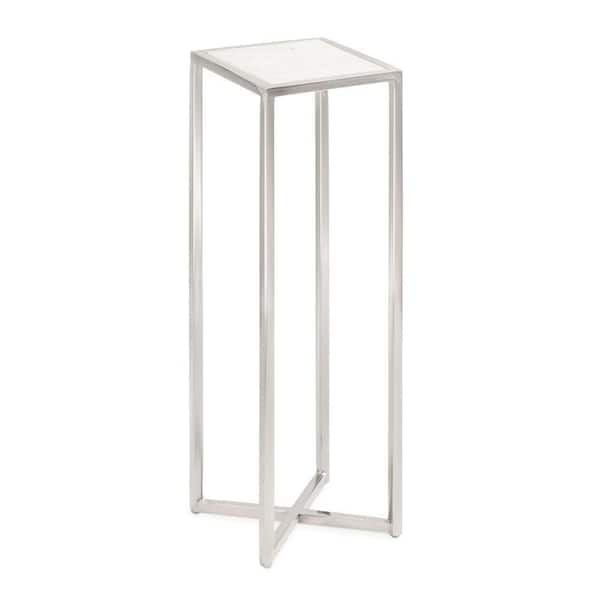 Jaspur 6.75 in. Silver Square Marble Glam End Table
