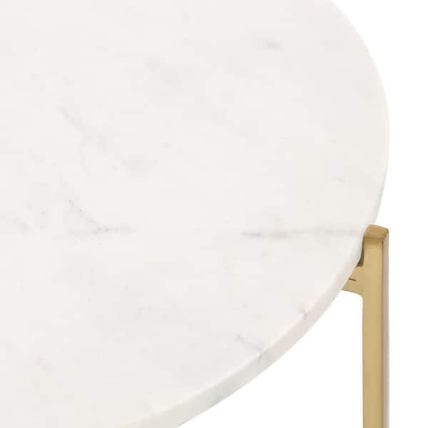 Add a simple touch of elegant style to your room with this Lavish side table. The combination of its smooth, authentic marble top and gold metal base make it a must for anyone seeking some sleek sophistication. Handcrafted in India, each piece will have unique variations due to the use of genuine marble. With two platforms to place your items, you can display some of your favorite decor pieces on the marble top and maybe store some reading material down below. At 26 in. high and 17 in. wide, this is the optimal size for a side table, and the adjustable feet pads can help keep the table level. Our easy-assembly design allows you to set up the table in just three, quick steps with no tools or equipment needed. With this Lavish table, you can easily elevate your space while providing real functionality.