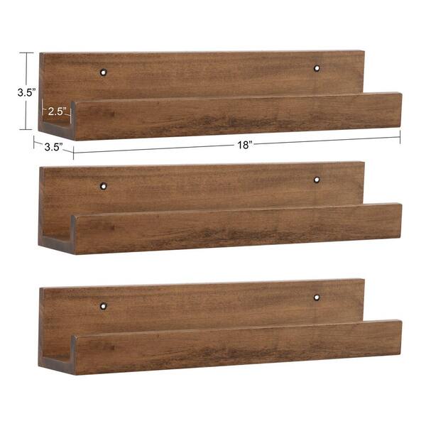 Levie 18 in. x 4 in. x 4 in. Rustic Brown Wood Floating Decorative Wall Shelf Without Brackets
