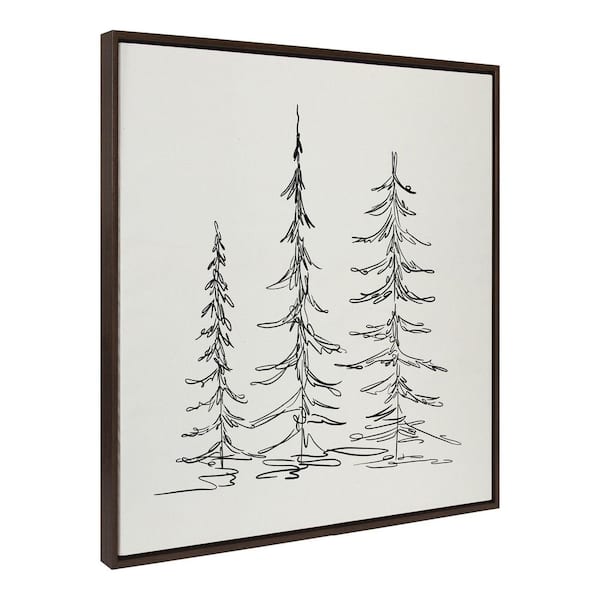 Minimalist Evergreen Trees Sketch by The Creative Bunch Studio Framed Nature Canvas Wall Art Print 30.00 in. x 30.00 in.