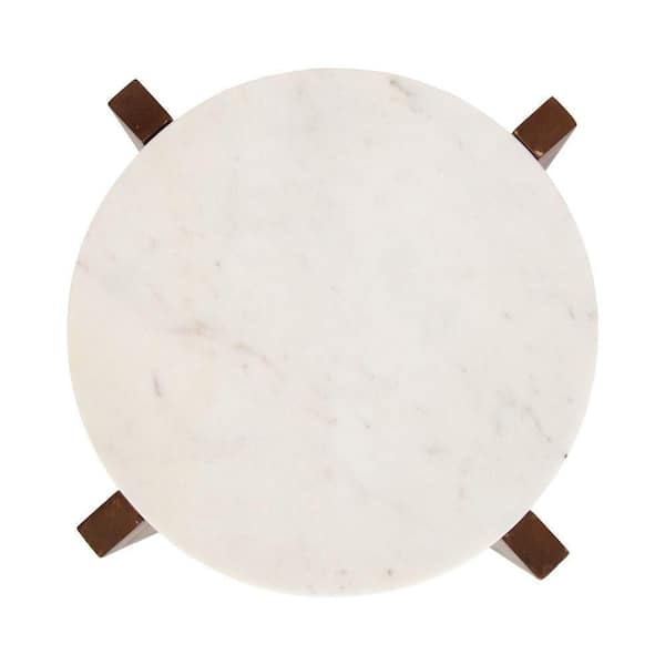 Moxley 16 in. Walnut Brown Round Marble End Table