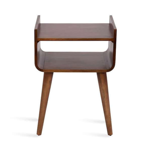Quilby 18.00 in. Walnut Brown Rectangle Solid Wood End Table