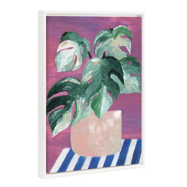 Soft Monstera House Plant Framed Canvas Wall Art 1-Piece White Framed Canvas Art Print, 18 in. x 24 in.