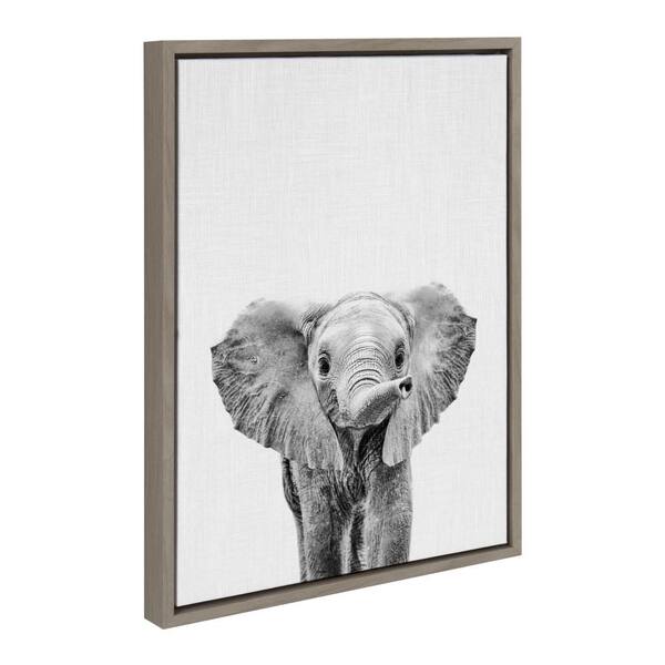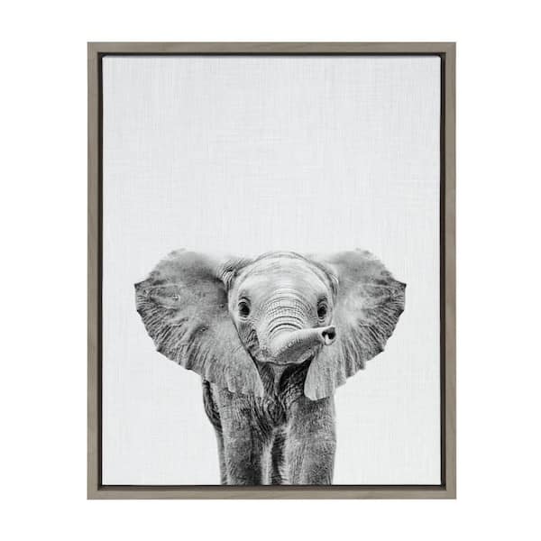 Sylvie "Baby Elephant BW" by Simon Te of Tai Prints Framed Canvas Animal Wall Art 24 in. x 18 in.