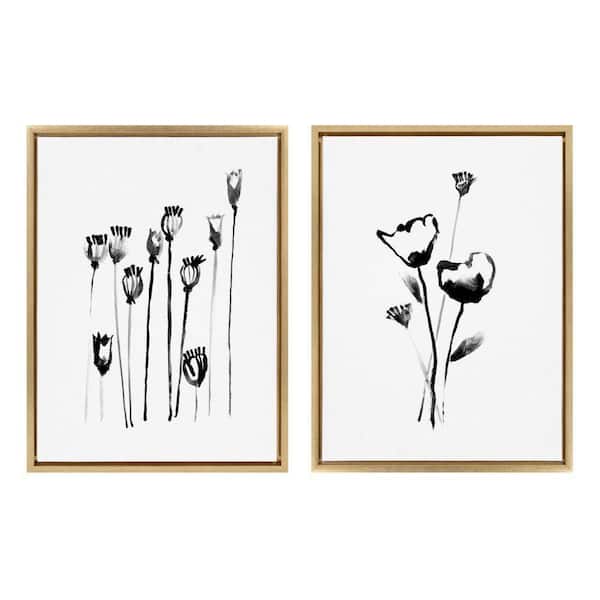 Sylvie Black and White Wildflowers and Seedpods by Teju Reval of SnazzyHues 2 Piece Framed Art Print 18 in. x 24 in.
