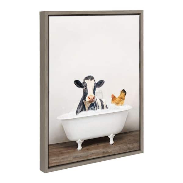 Sylvie Cow and Chicken in Rustic Bath by Amy Peterson Art Studio Framed Art Print 18 in. x 24 in.