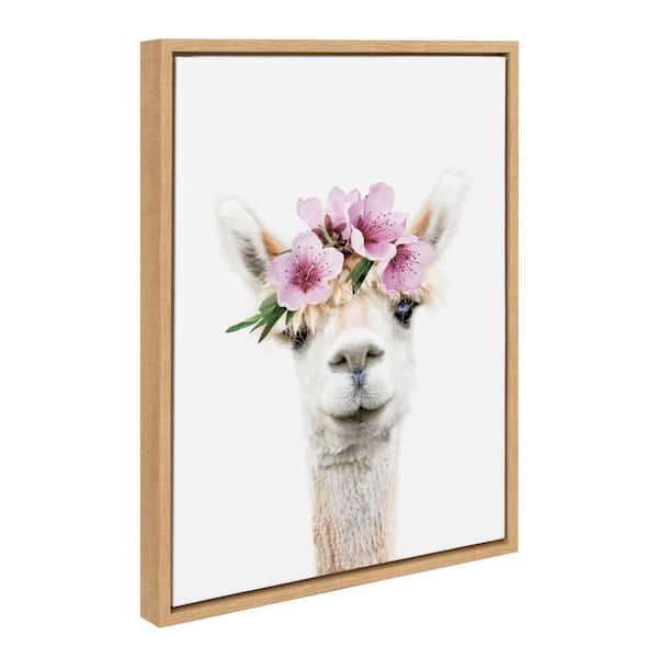 Sylvie Flower Crown Alpaca Framed Canvas by Amy Peterson Art Studio (Set of 1) Animal Art Print 18.00 in. x 24.00 in.