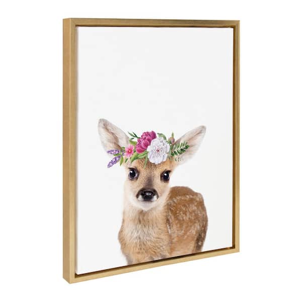 Sylvie Flower Crown Fawn Framed Canvas by Amy Peterson Art Studio Set of 1 Animal Art Print 18.00 in. x 24.00 in.