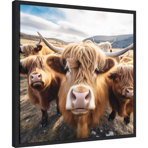 Sylvie Funny Animal Highland Cow Selfie by The Creative Bunch Studio Framed Art Print 22 in. x 22 in.