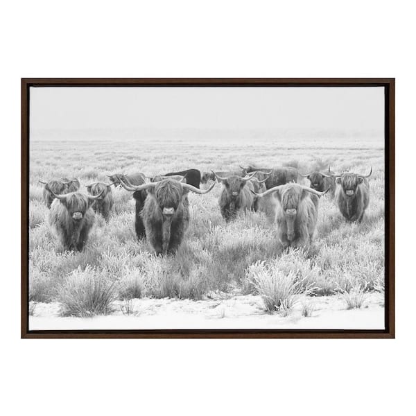 Sylvie Herd of Highland Cows Black and White by The Creative Bunch Studio Framed Art Print 33 in. x 23 in.