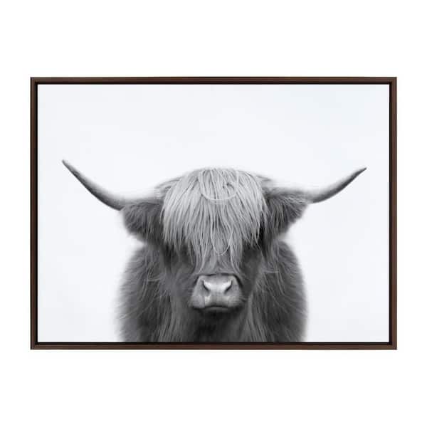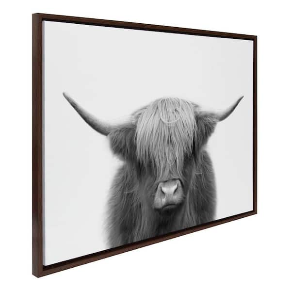 Sylvie Hey Dude Highland Cow BW by The Creative Bunch Studio Framed Art Print 28 in. x 38 in.