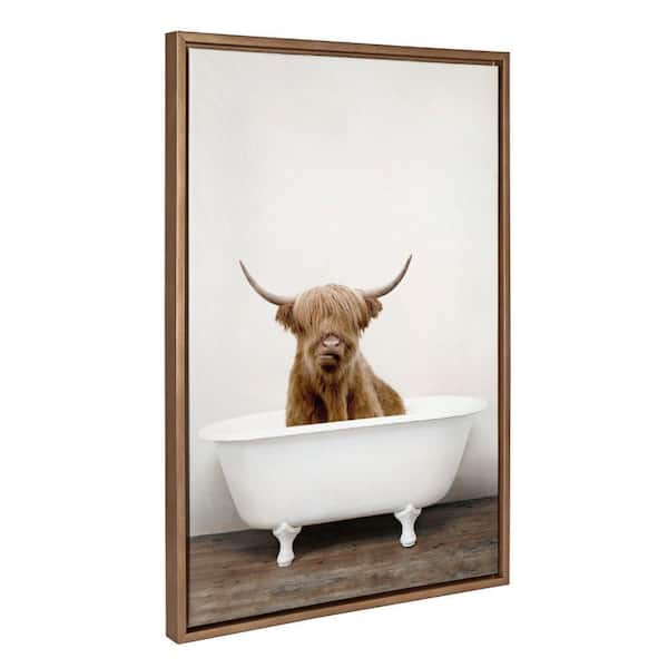 Sylvie Highland Cow in Tub Color by Amy Peterson Art Studio Framed Art Print 23 in. x 33 in.