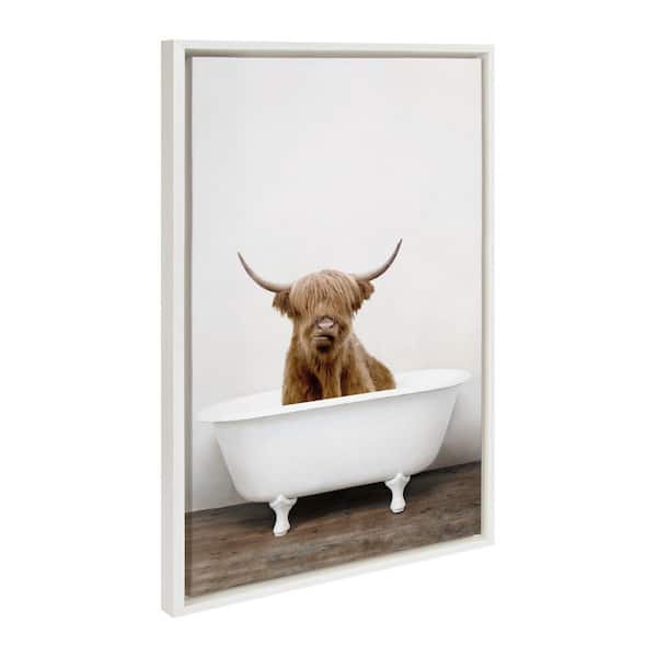 Sylvie Highland Cow in Tub Color by Amy Peterson Art Studio Framed Art Print 23 in. x 33 in.