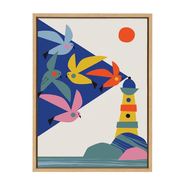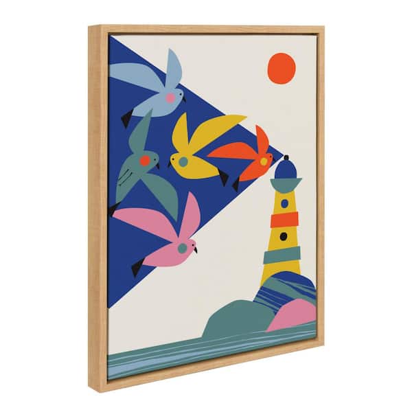 Sylvie "Lighthouse Birds" by Rachel Lee of My Dream Bird Framed Canvas Wall Art 24 in. x 18 in.