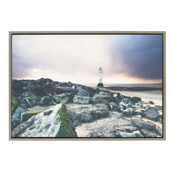 Sylvie Over the Rocks and Across the Beach by Laura Evans Framed Canvas Landscape Art Print 23 in. x 33 in.