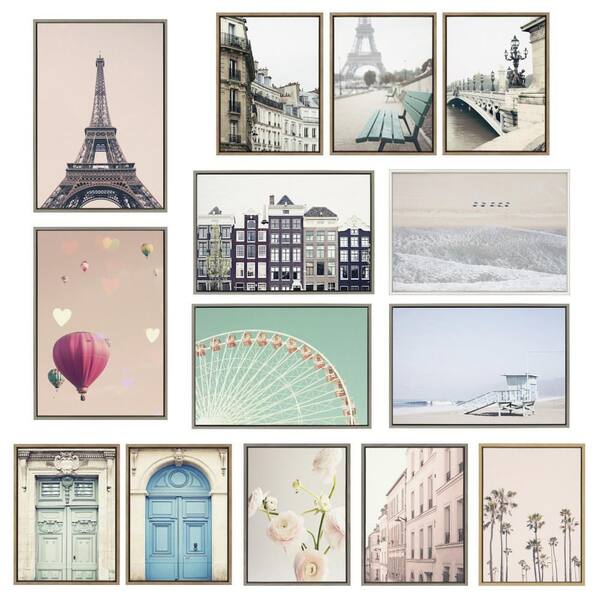 Waves Crashing, Palm Tree Paradise and Lifeguard Tower Framed Nature Canvas Wall Art Print 33 in. x 23 in. (Set of 2)